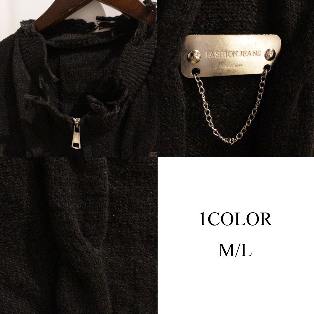 プレートバッジ付きダメージニットカーディガン